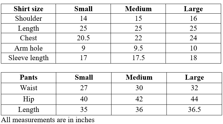 Shalwar/pant measurement (Inches):